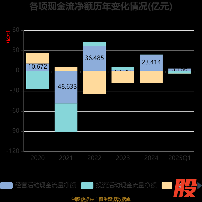 截至2025年一季度末牛牛配,公司经营活动现金流净额为3.19亿元,同比增长32.39%;筹资活动现金流净额-8947.93万元,同比增加1.95亿元;投资活动现金流净额-4.27亿元,上年同期为2.28亿元。