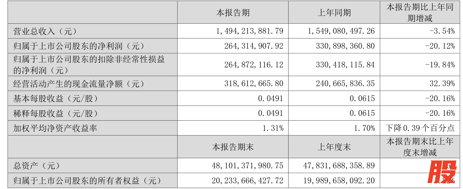 中证智能财讯电投产融(000958)4月26日披露2025年第一季度报告。公司实现营业总收入14.94亿元,同比下降3.54%;归母净利润2.64亿元,同比下降20.12%;扣非净利润2.65亿元,同比下降19.84%;经营活动产生的现金流量净额为3.19亿元,同比增长32.39%;报告期内,电投产融基本每股收益为0.0491元,加权平均净资产收益率为1.31%。
