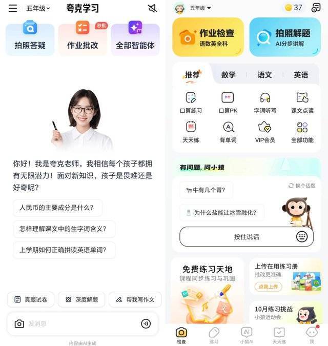 互联网大厂的产品则更注重用户体验、强调交互效率,主打拍照答疑、AI作业批改、单词背诵等基础工具,但产品独特性不强。