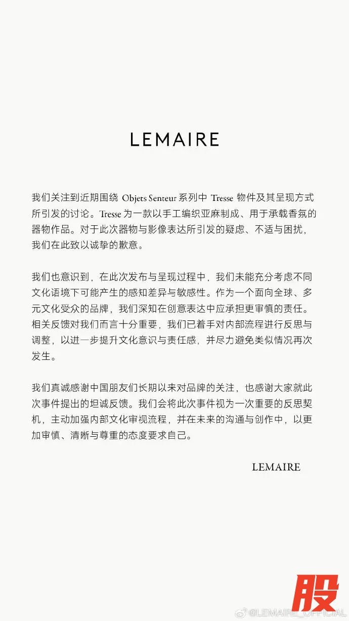 4月26日, @LEMAIRE OFFICIAL发文致歉。